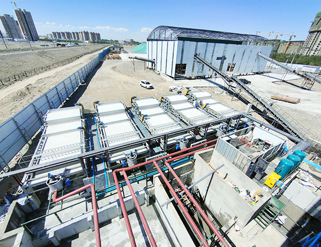 洗沙污水處理設備主要由驅(qū)動裝置、機架、壓榨輥、上濾帶、下濾帶、濾帶張緊裝置、濾帶清洗裝置、卸料裝置、氣控系統(tǒng)、電氣控制系統(tǒng)等組成。
